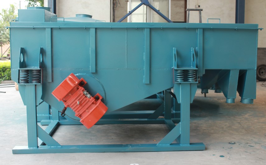 直線振動篩是振動篩的一種,主要是利用振動電機(jī)激振作為振動源,使物料在篩網(wǎng)上被拋起,同時(shí)向前作直線運(yùn)動,物料從給料機(jī)均勻地進(jìn)入篩分機(jī)的進(jìn)料口,兩電機(jī)同步反向旋轉(zhuǎn)使激振器產(chǎn)生反向激振力,迫使篩體帶動直線振動篩篩網(wǎng)做縱向運(yùn)動,使其上的物料受激振力而周期性向前拋出一個(gè)射程,從而完成物料篩分作業(yè)。